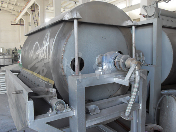 The working principle of the TG series drum dryer is to allow liquid or slurry like materials to form a thin film on the surface of the drum heated by other carriers of water vapor, and to be dried during one revolution of the drum,