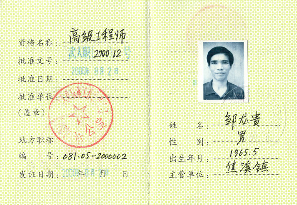 Senior Engineer Certificate